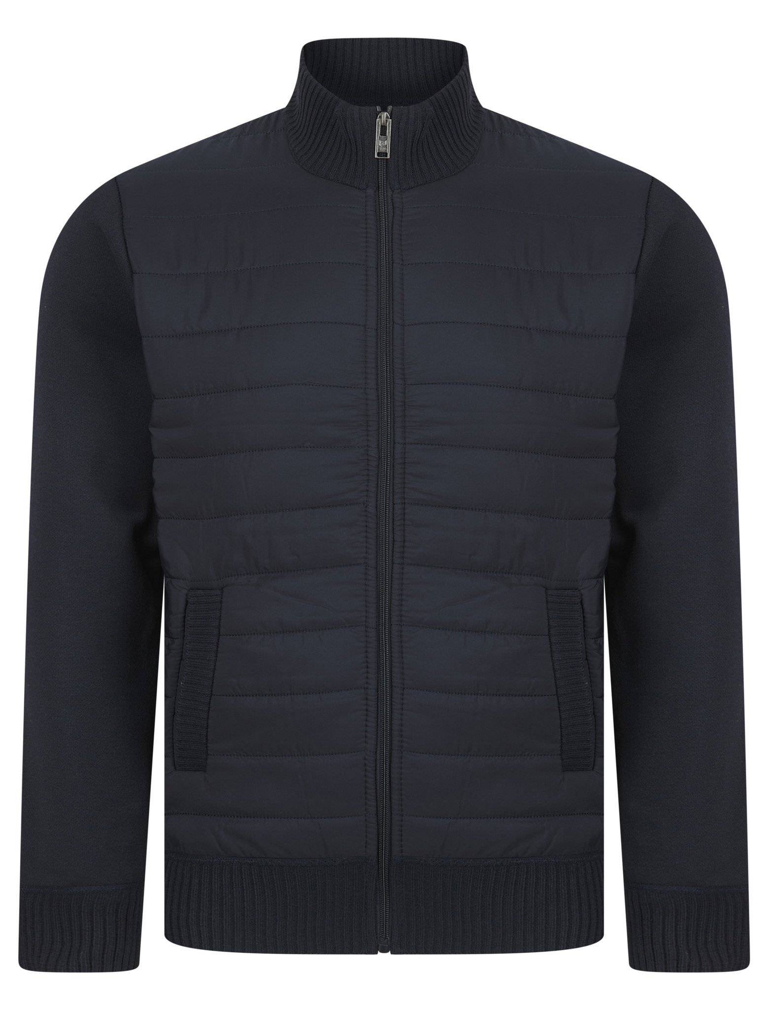 Ken Knitted Jacket with Padded Front – Men’s Zip-Up Bomber - Navy