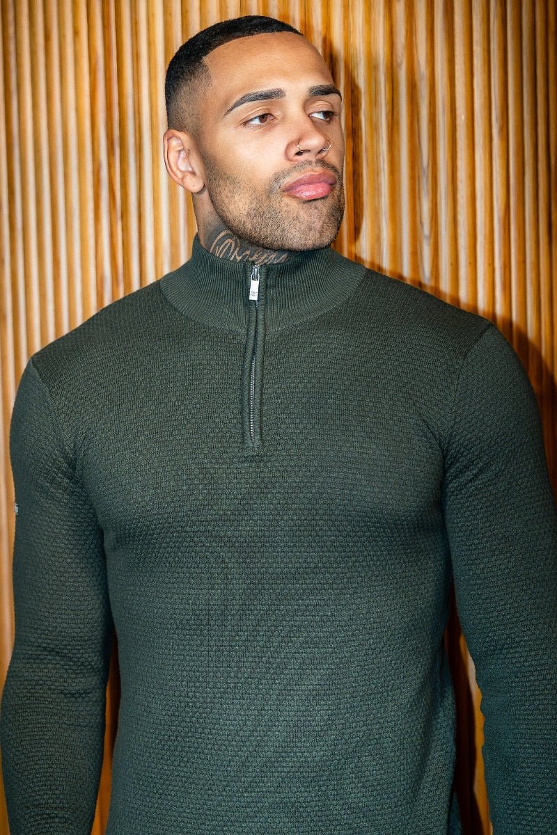 Men’s Lyra Textured ¼ Zip Jumper – Green